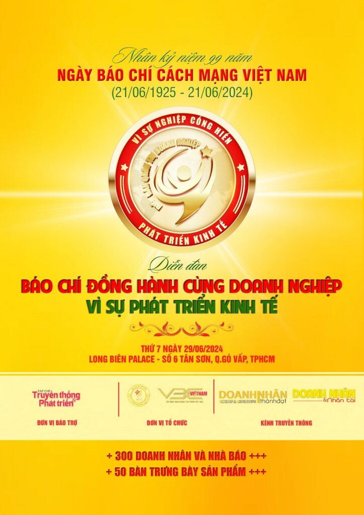 Diễn đàn báo chí đồng hành cùng doanh nghiệp vì sự phát triển kinh tế sẽ diễn vào ngày 29/06/2024 tại Tp. Hồ Chí Minh.